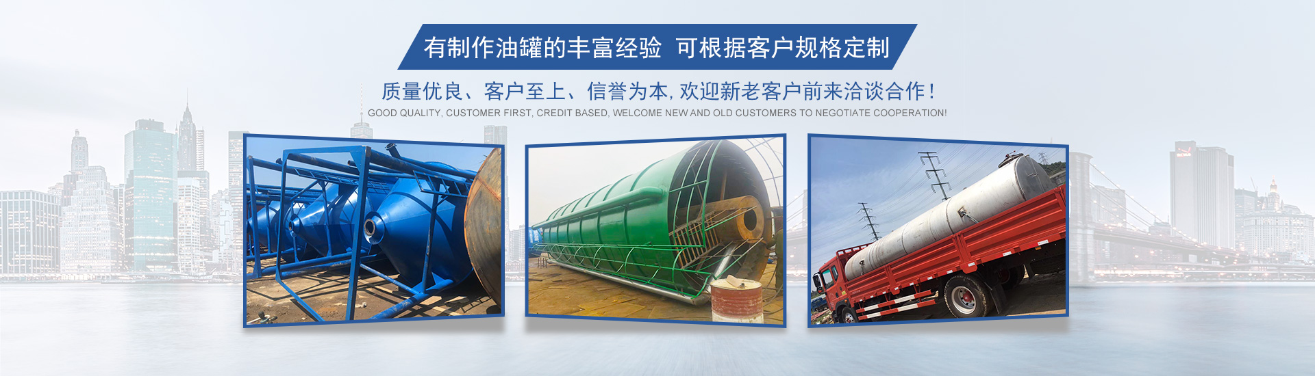 溫州創搏化工設備有限公司有制作油罐的豐富經驗,專業生產各種散裝水泥罐、水泥倉,大型水泥罐、不銹鋼罐、碳鋼油罐(1m3--50000m3)各種規格臥式罐 、大型立式油罐、發酵罐、糧油儲備罐、食用油罐、保溫罐、瀝青罐、儲酒罐、消防儲水罐、航空煤油罐、不銹鋼罐、污水處理罐、脫硫塔、石油化工管道安裝、工業管道安裝、雙層罐、臥式油罐、地埋油罐、沙濾罐等各類設備,并可根據客戶規格定制......